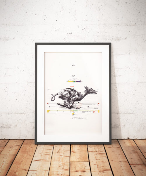 Tra i suoi soggetti, oltre ad esseri umani, ricorrono spesso topi e cani, bloccati nel momento culminante dell’azione da coordinate, cifre, diagrammi di colore o misure di tempo e di spazio.