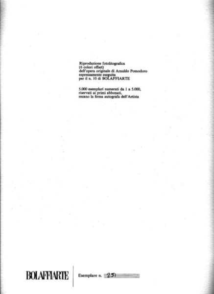 • Firmato ‘Arnaldo Pomodoro ’71’ in basso a destra. Numerato sul retro