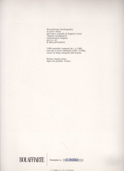 • Firmato ‘Carmi’ in basso a destra. Numerato sul retro