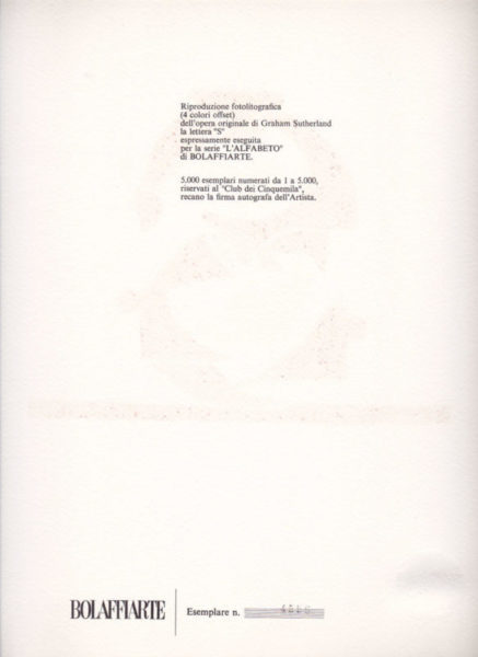 • Firmato ‘G. S.’ in basso a sinistra. Numerato sul retro