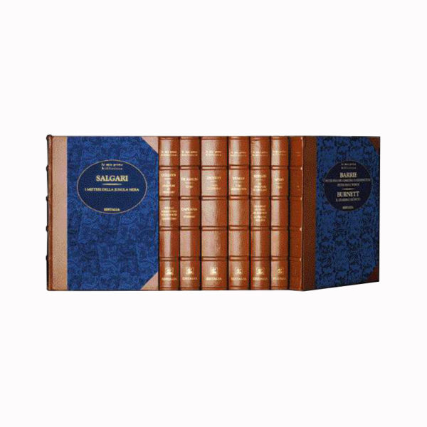 Rilegatura in mezza pelle pregiata e seta serigrafata, con impressioni in oro zecchino sul piatto e sul dorso.