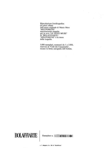• Firmato ‘Merz’ in basso a destra. Numerato sul retro