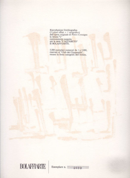 • Firmato “Pietro Consagra” in basso a destra. Numerato sul retro