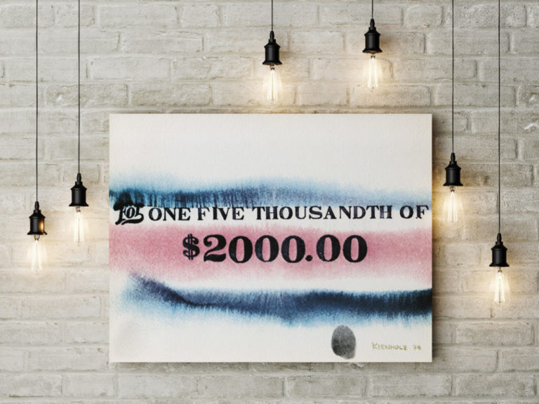 Polemico narratore del lato oscuro e patologico del modello economico, sociale e culturale statunitense, Kienholz usa per rappresentare questo particolare sesto senso una cifra apparentemente iperbolica, subito negata dalla scritta in piccolo che la sovrasta: One Five Thousandth of $ 200.00 è infatti pari…a 4.